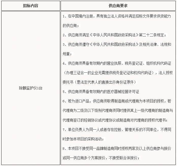除颤监护仪院内采购公告