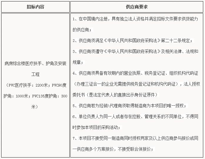 病房综合楼医疗扶手、护角及安装工程院内采购二次公告