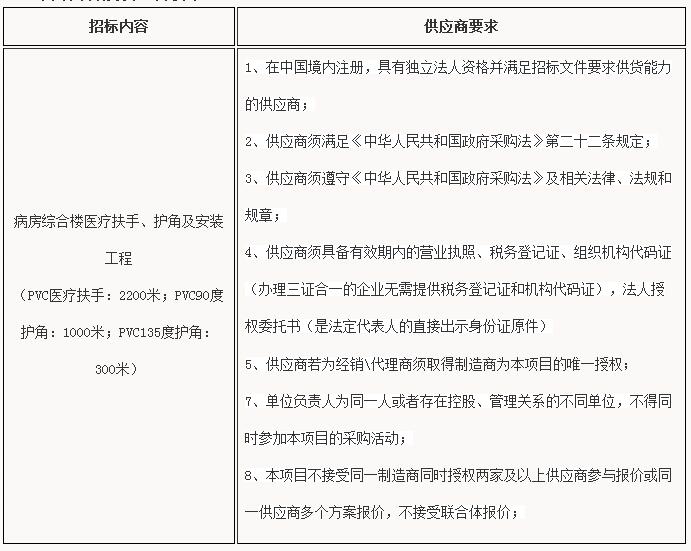 病房综合楼医疗扶手、护角及安装工程院内采购公告