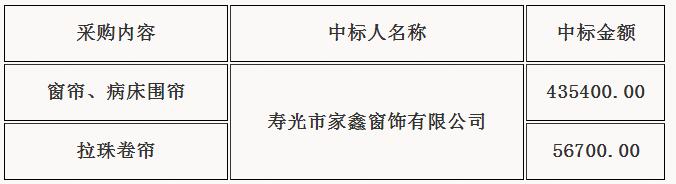 窗帘、病床围帘、拉珠卷帘预中标公示