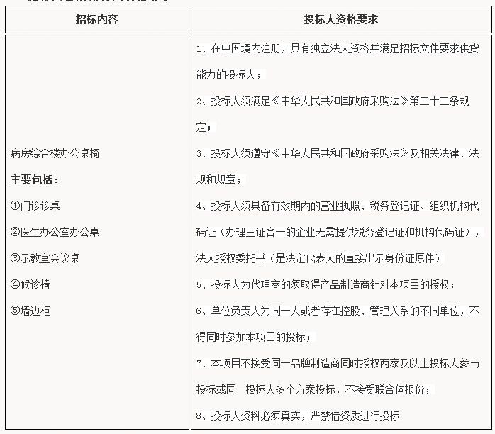 病房综合楼办公桌椅招标公告