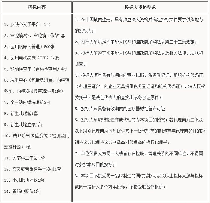 医疗设备招标公告