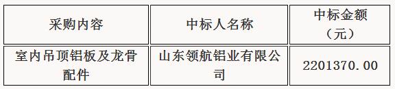 病房综合楼室内吊顶铝板及龙骨配件中标公示