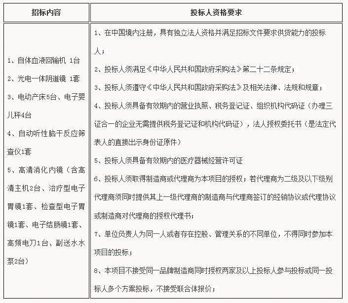 医疗设备招标公告