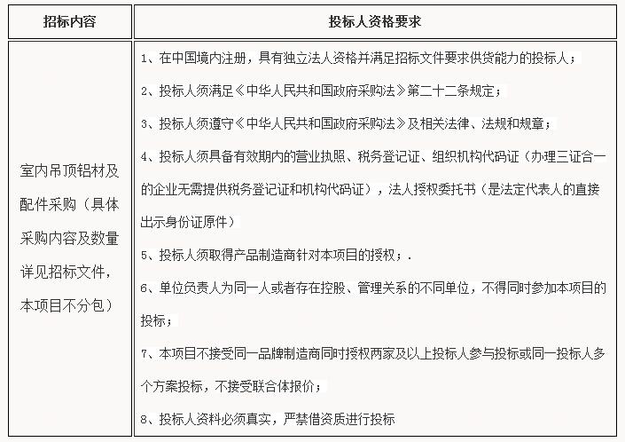 病房综合楼室内吊顶铝材及配件招标公告