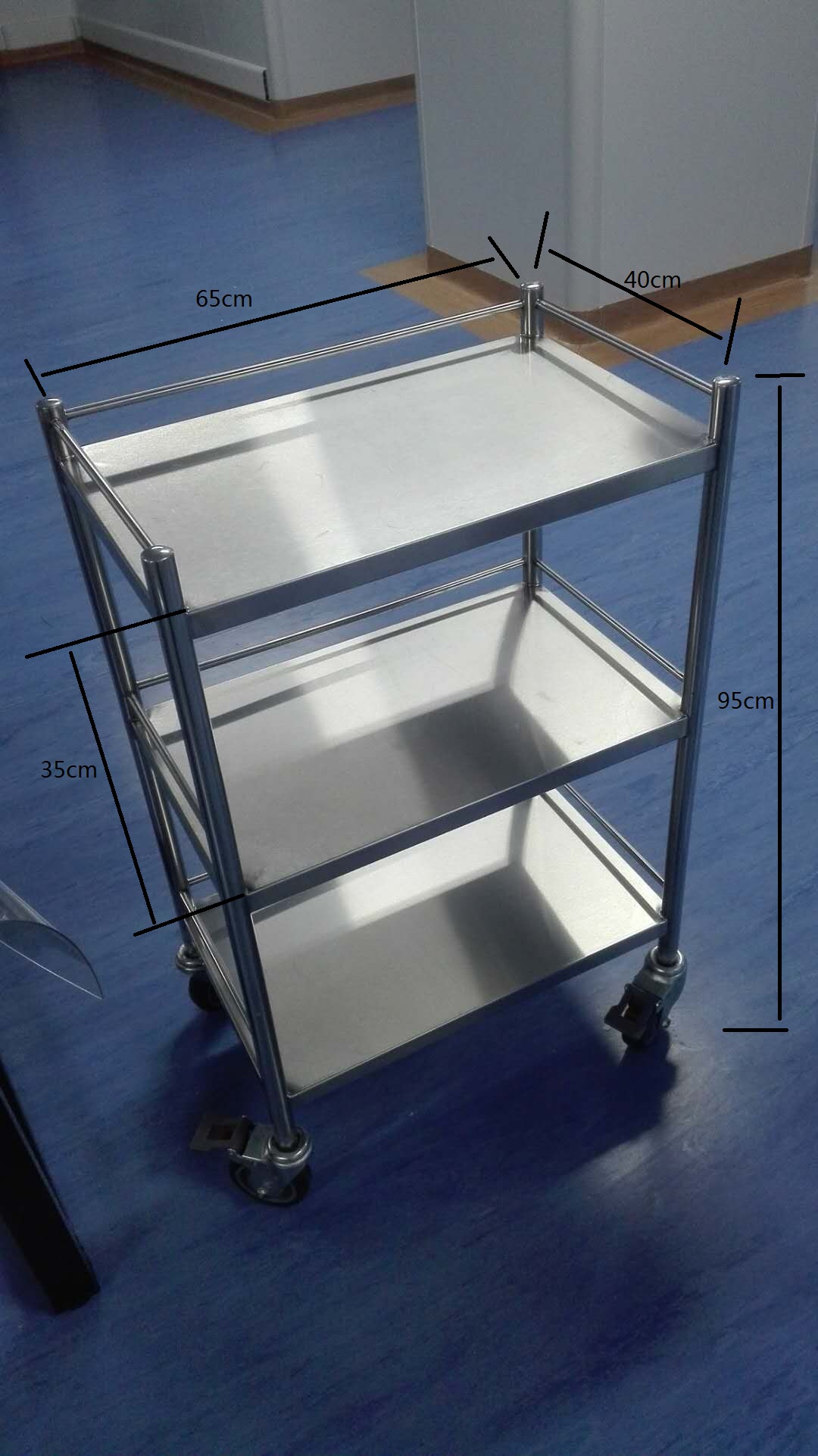1.材质304不锈钢,整个车体坚固耐用,搭载医用脚轮。