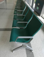 1、规格1860*640*840,三人一组,矮背,铝合金脚架,中间带扶手,扶手不带皮,八角横梁,PU棉饰面,颜色绿色