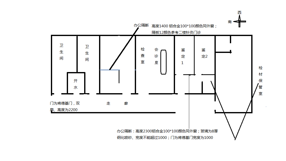1、本次询价范围为寿光市中医医院司法鉴定中心改造施工,包含隔断、肯德基门、LED灯、洗手盆(含供排水)、墙面乳胶漆找补及踢脚线粘贴等方面的内容,详见技术要求;